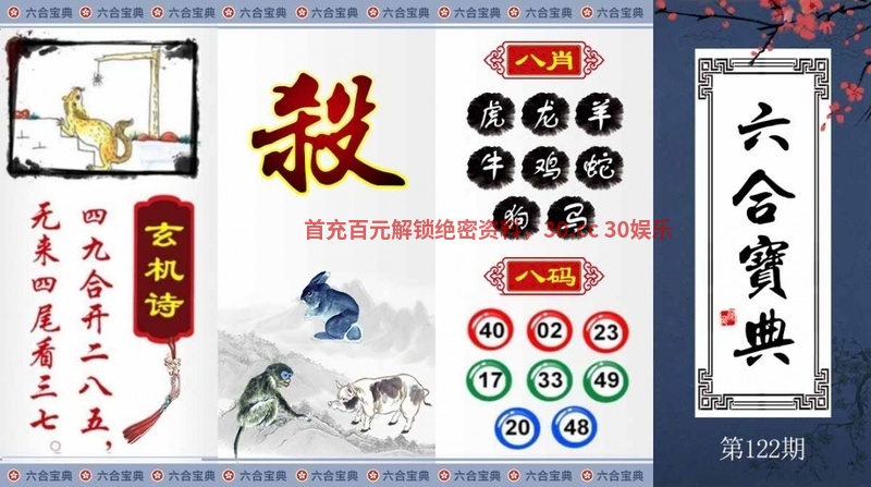| 124期:九肖【猴虎蛇猪羊牛鸡龙兔】开:牛05准 |